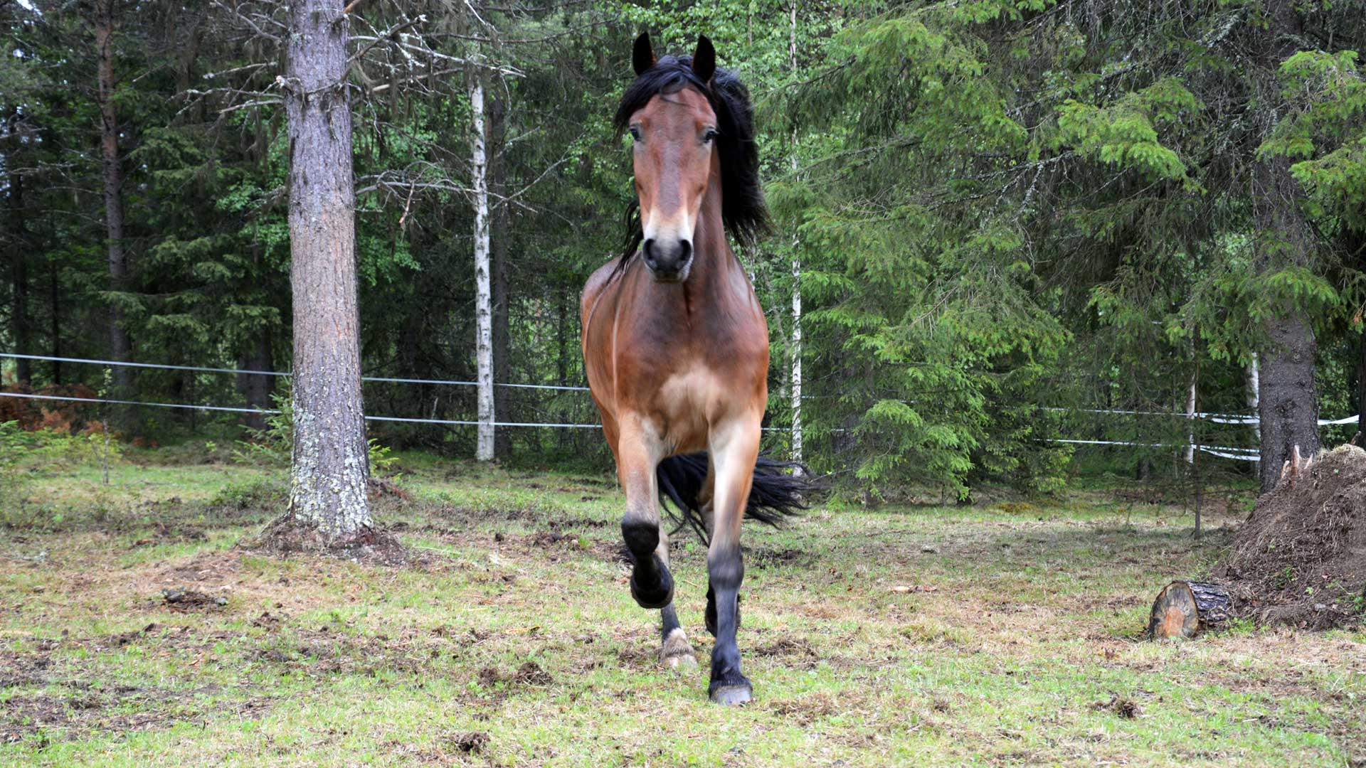 C’est un trotteur au « sang froid » comme ils disent ici, qui a été réformé jeune des courses de sulky. Le trot est un sport national en Suède, presque autant qu’en France !
