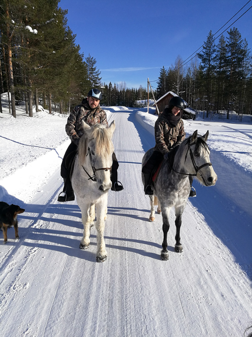 C’est un adorable cheval de balade qui, même s’il a toujours vécu sur l’ile de Ré, s’est parfaitement adapté à l’hiver suédois.